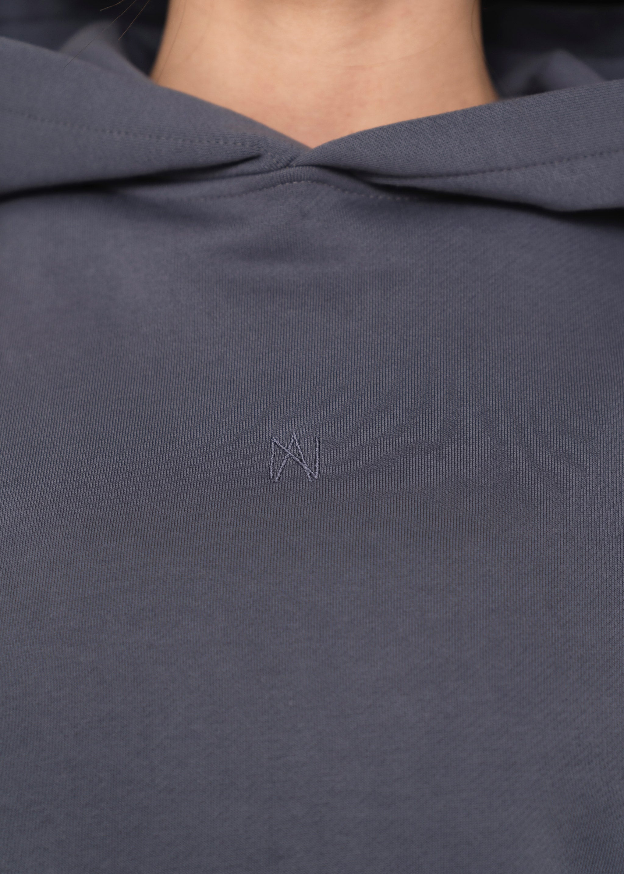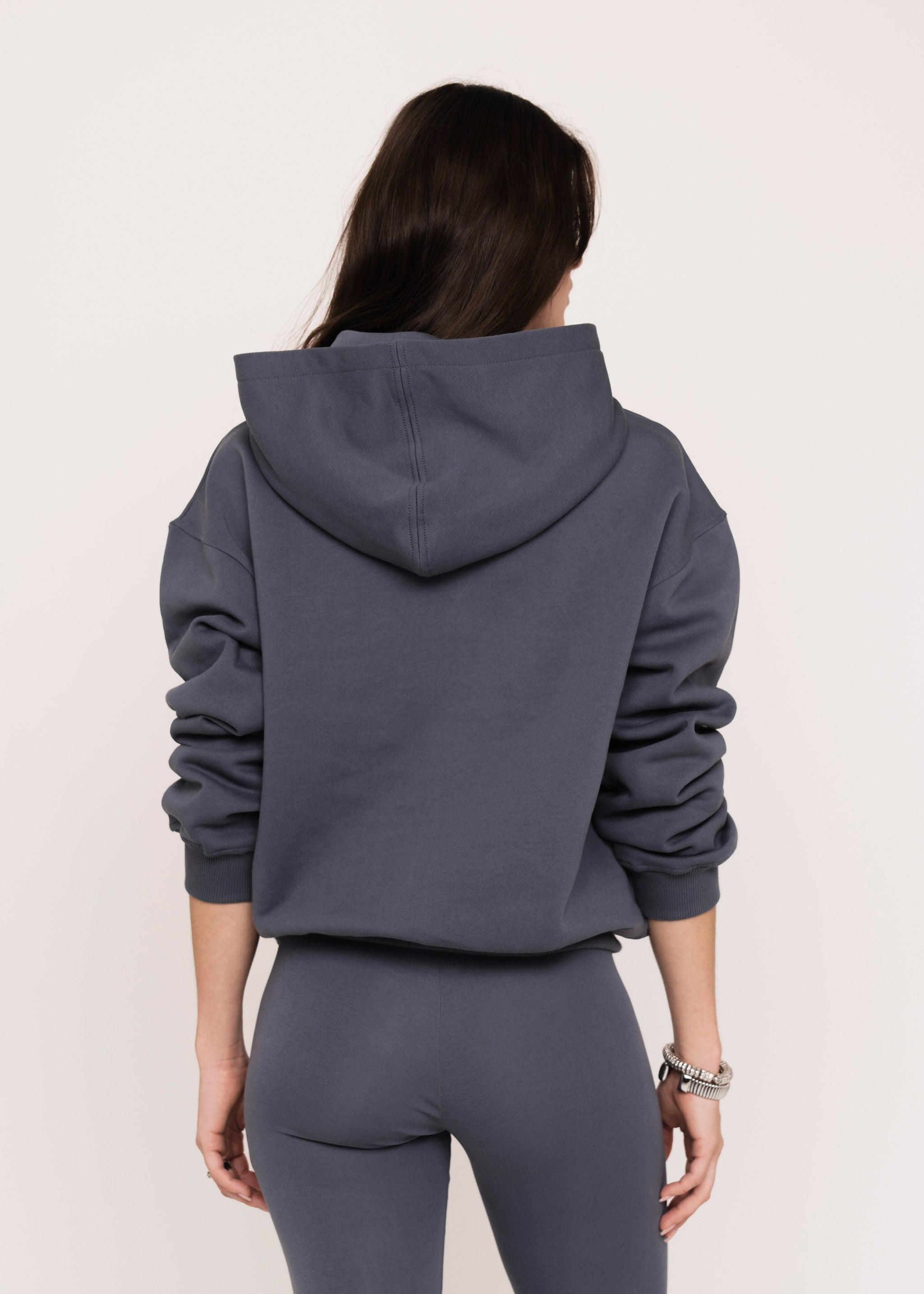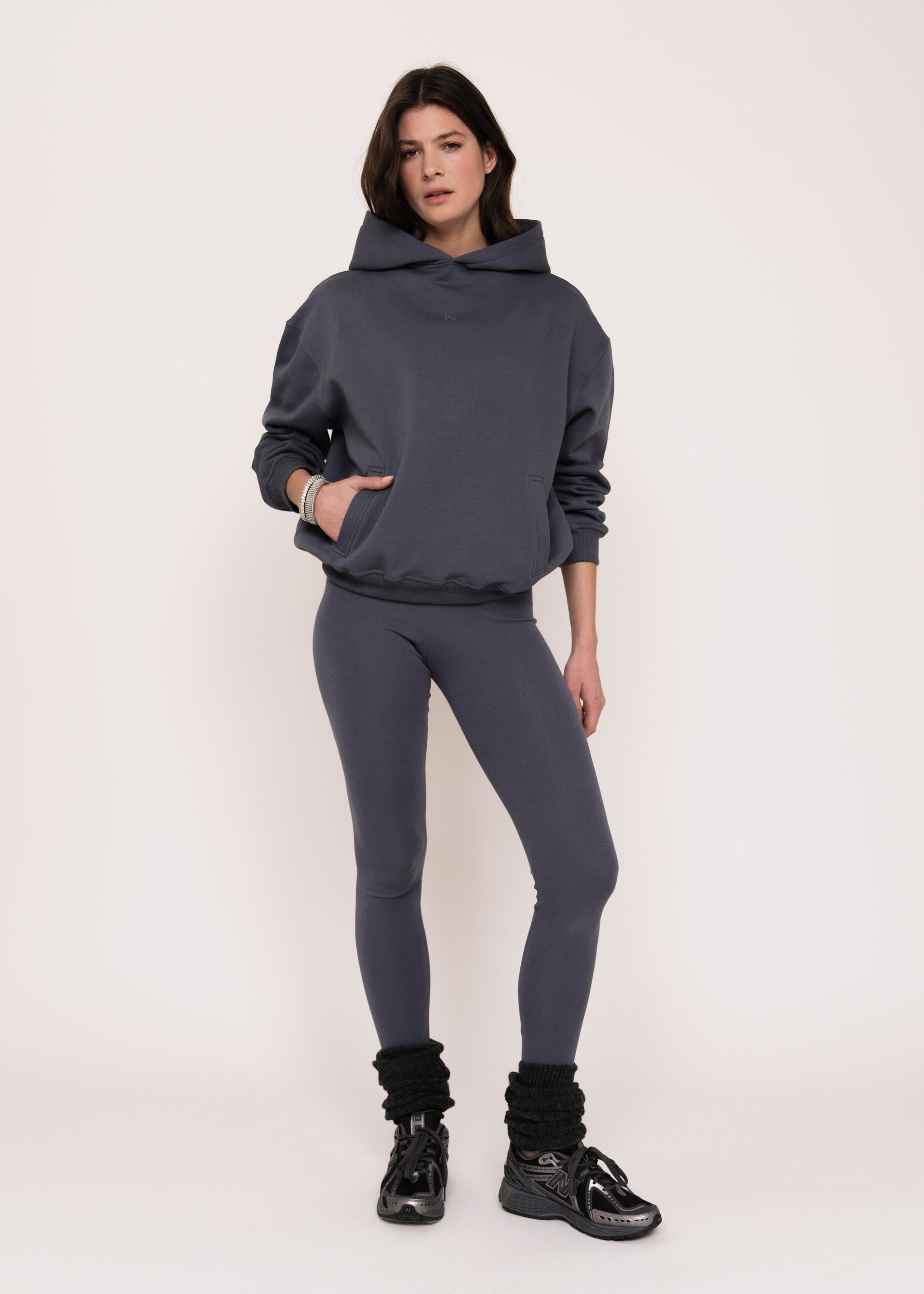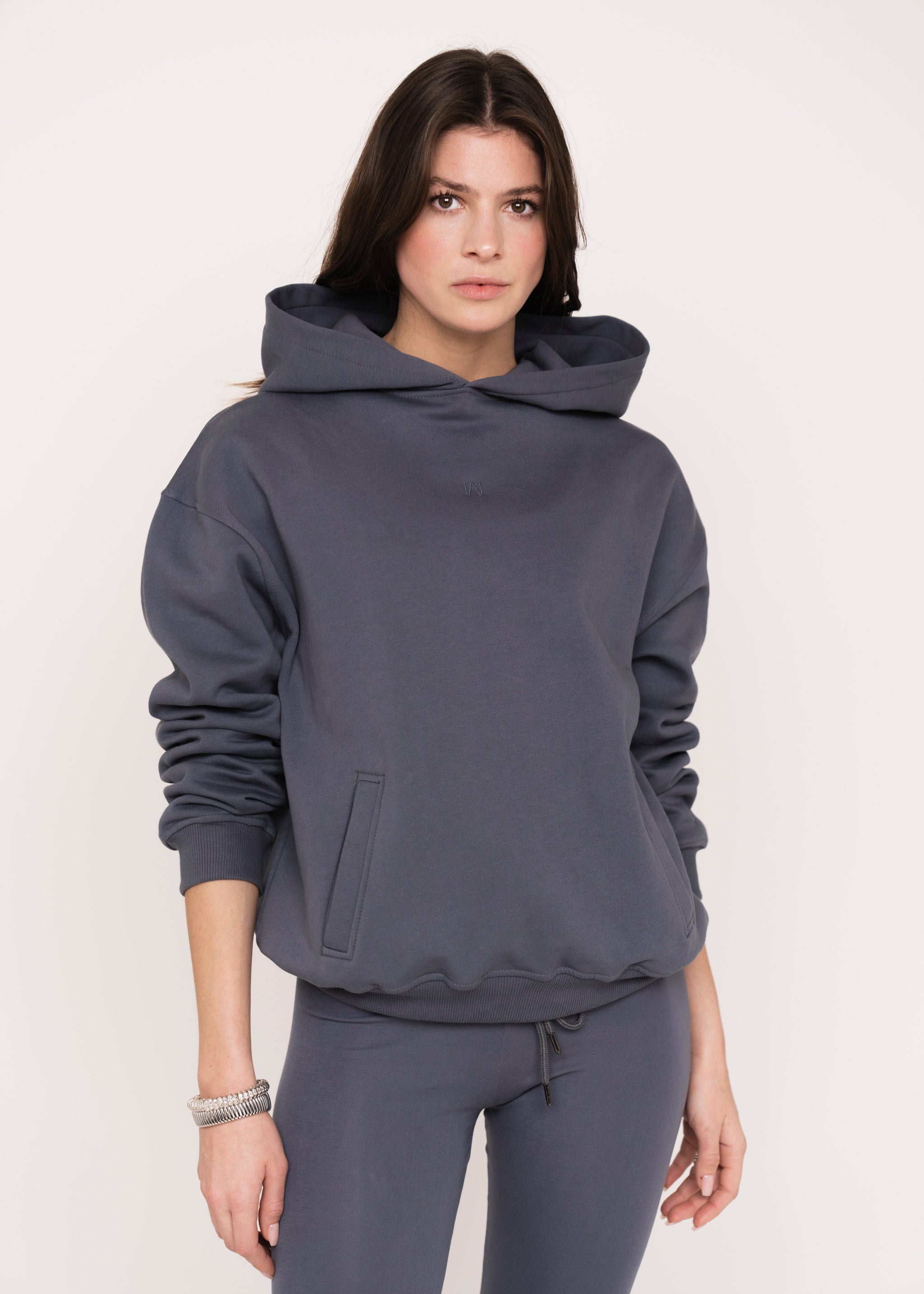 Oversized adjustable hoodie with rib detail around the hem and cuff.